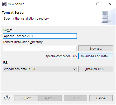 Apache를 확장해서 Tomcat v9.0을 선택 했습니다.