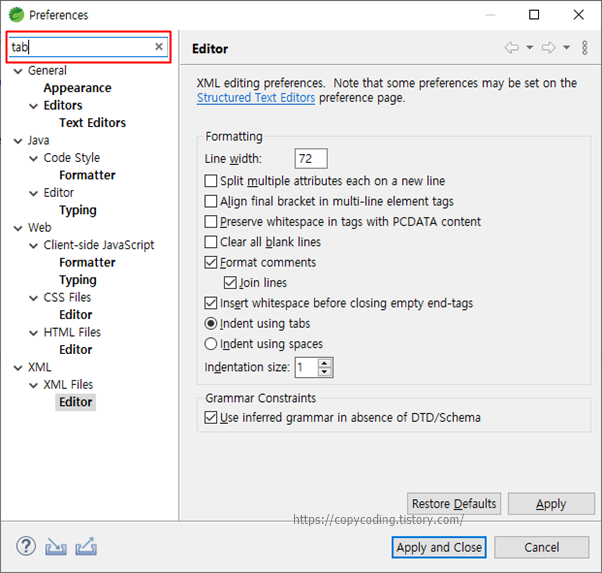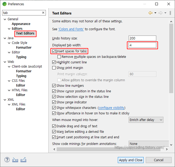 | [eclipse] 이클립스 tab 간격 space로 변경 방법 (0) | 2023.03.17 |