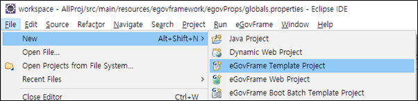 File > New > eGovFrame Template Project