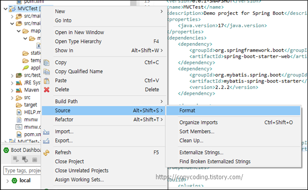 프로젝트 명에 마우스를 대고 우측 버튼을 이용하여
