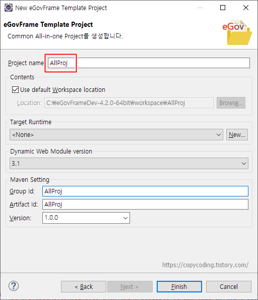 이렇게 4곳만 egovframework-all-in-one 을 AllProj 으로 수정해 줍니다.