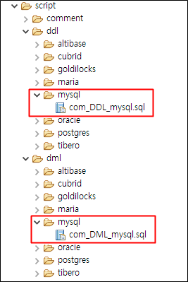 DB에 테이블 및 데이터가 있어야 구동이 되므로 Script 폴더에서 설정한 DB에 맞는 스크립트를 이용하여 쿼리를 실행해줍니다.