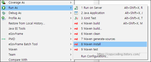 Run As > Maven Install 을 선택합니다.
