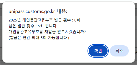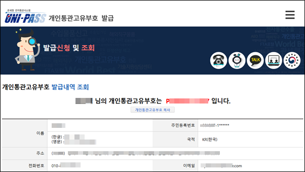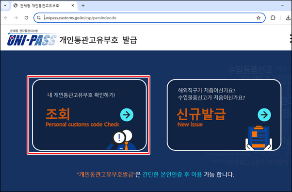 관세청의 개인통관고유부호 발급기관에 접속합니다.