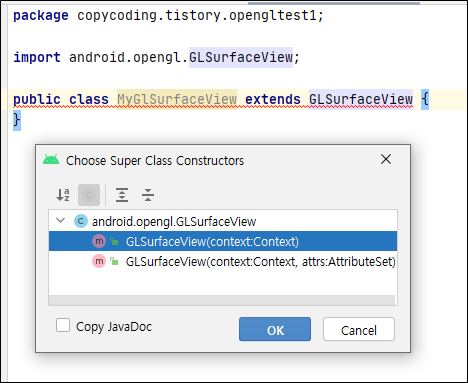 MyGLSurfaceView.java 파일을 생성하고 GLSurfaceView로부터 상속을 받습니다.