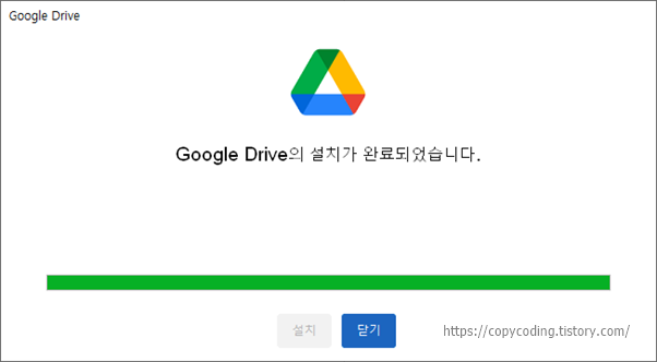 잠시 후 설치가 완료되면 [닫기] 버튼으로 닫아주고
