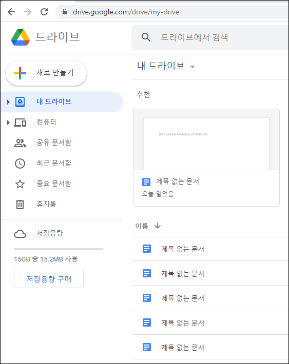 구글 드라이브 메인 화면에서 하단으로 죽 내려가면 맨 아래쪽에