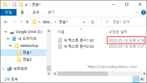 배치파일을 클릭해서 실행하면 구글 드라이브에 파일이 복사 됩니다.